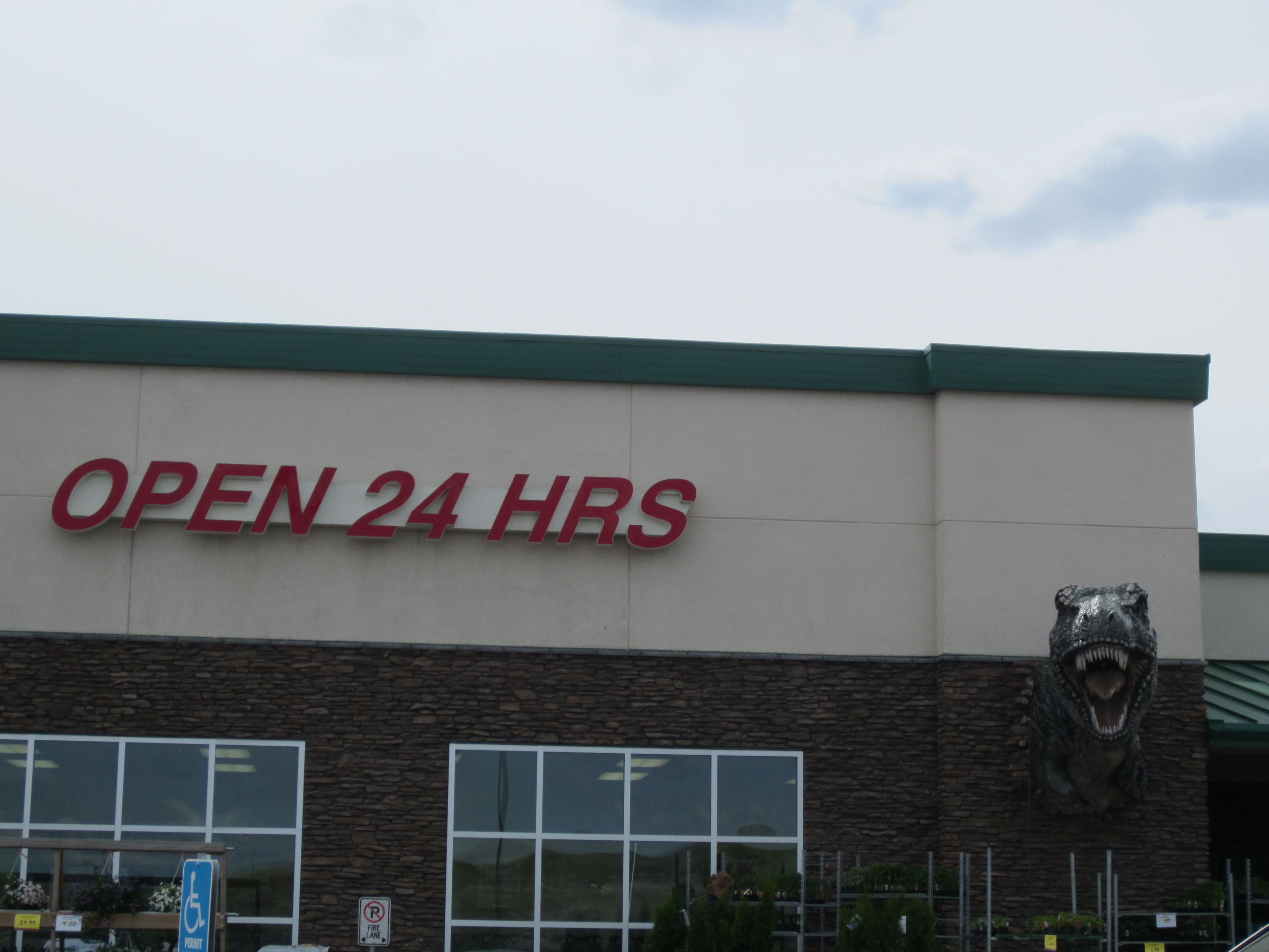 There are dinosaurs everywhere in my town. This scary Trex is coming out the side of the local IGA. Yes, it’s still called an IGA.