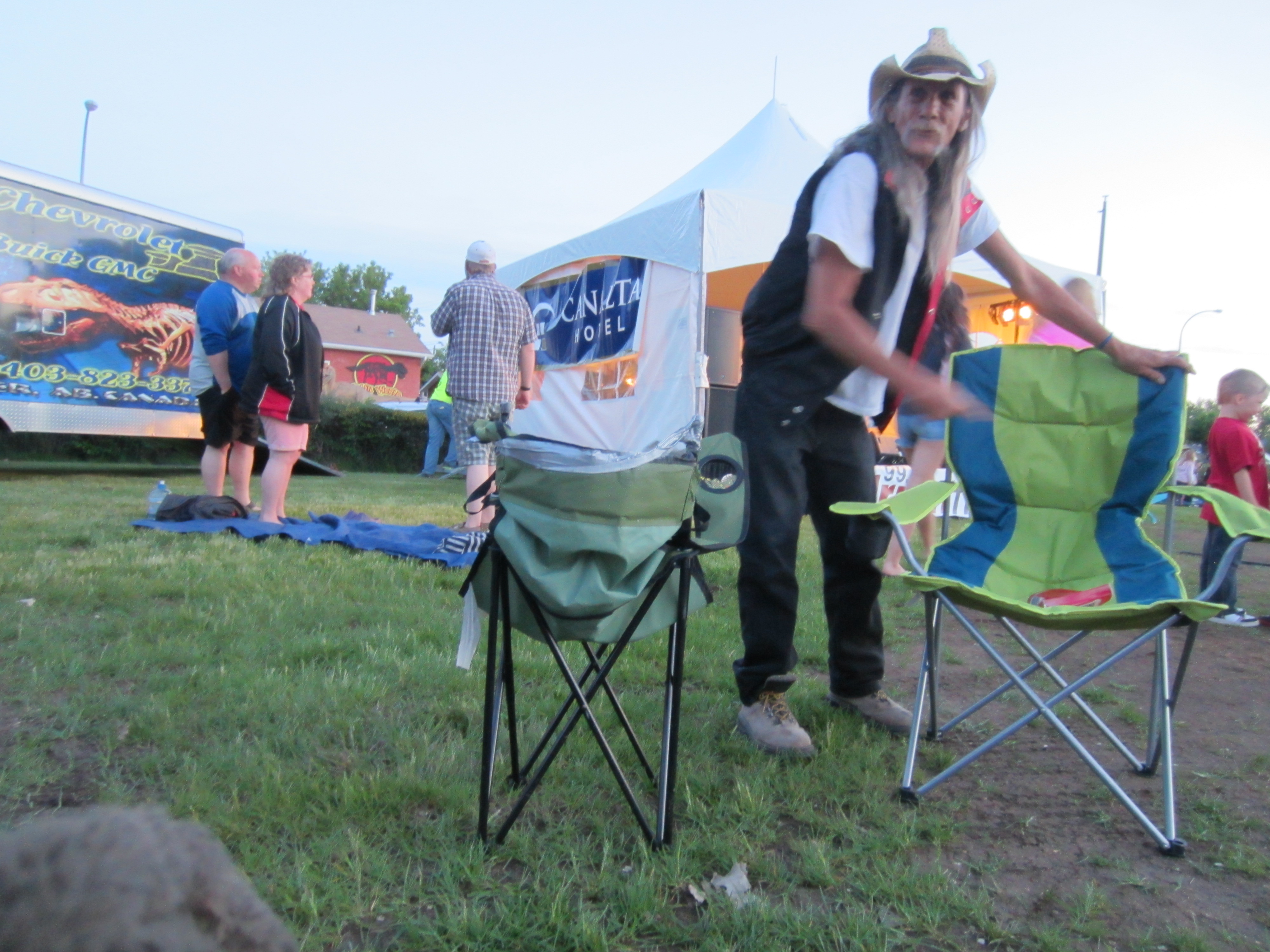 This old drunk hippie was awesome. His chairs what were duct taped together were more than baffling for him. Sidekick had to lend a hand while trying to control high laughter