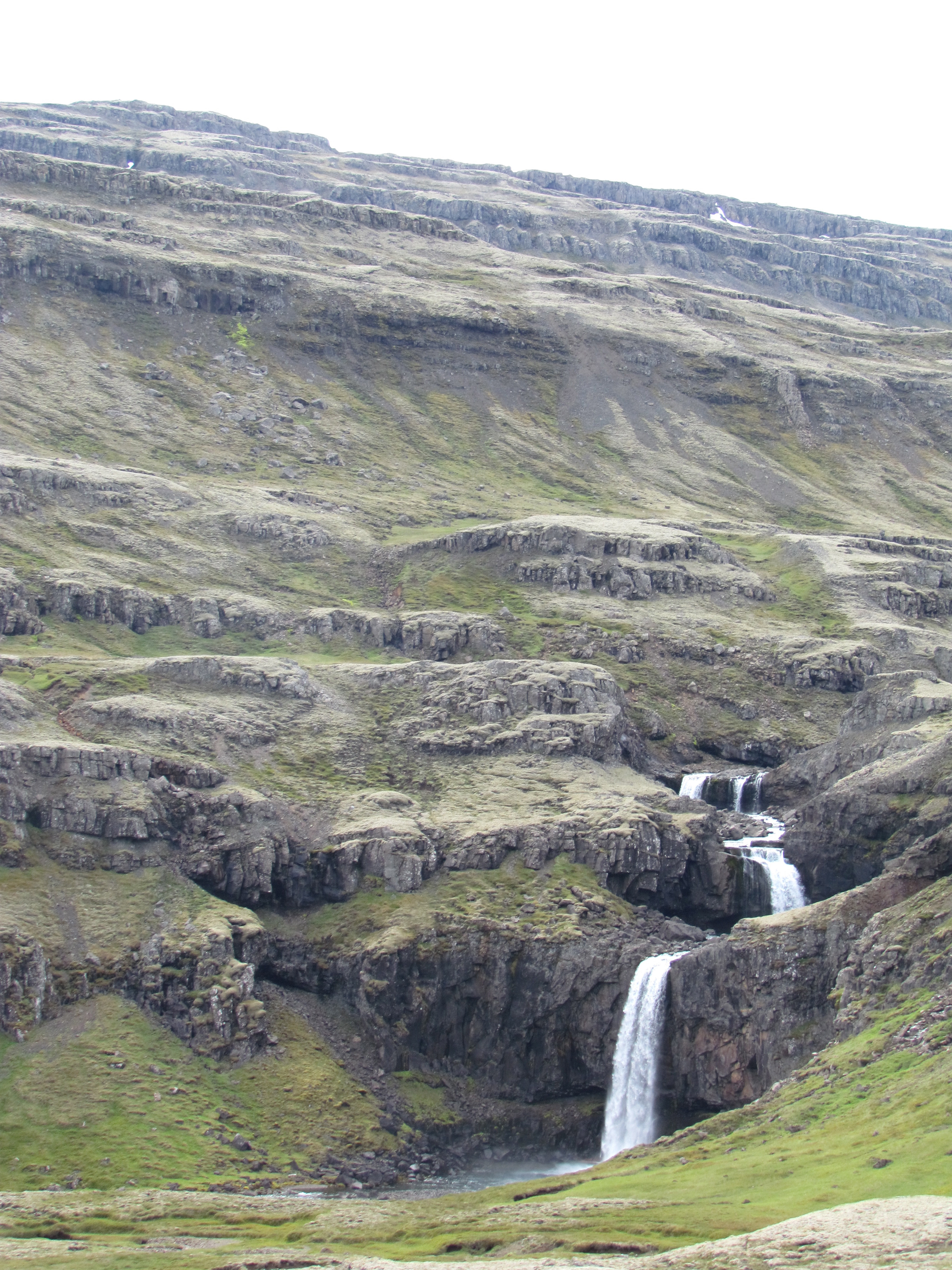 Random waterfall in the backroads of Iceland. The layers of lava from over the centuries builds up the mountain, as the lava cools on its way into the ocean
