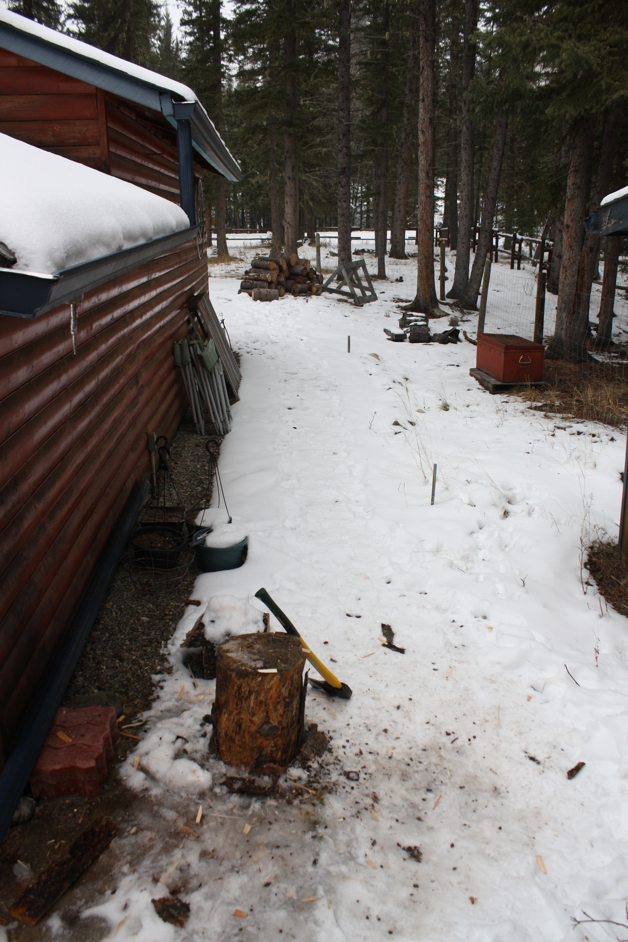 This is the path between the garage and the dog run. It’s also my wood cutting factory